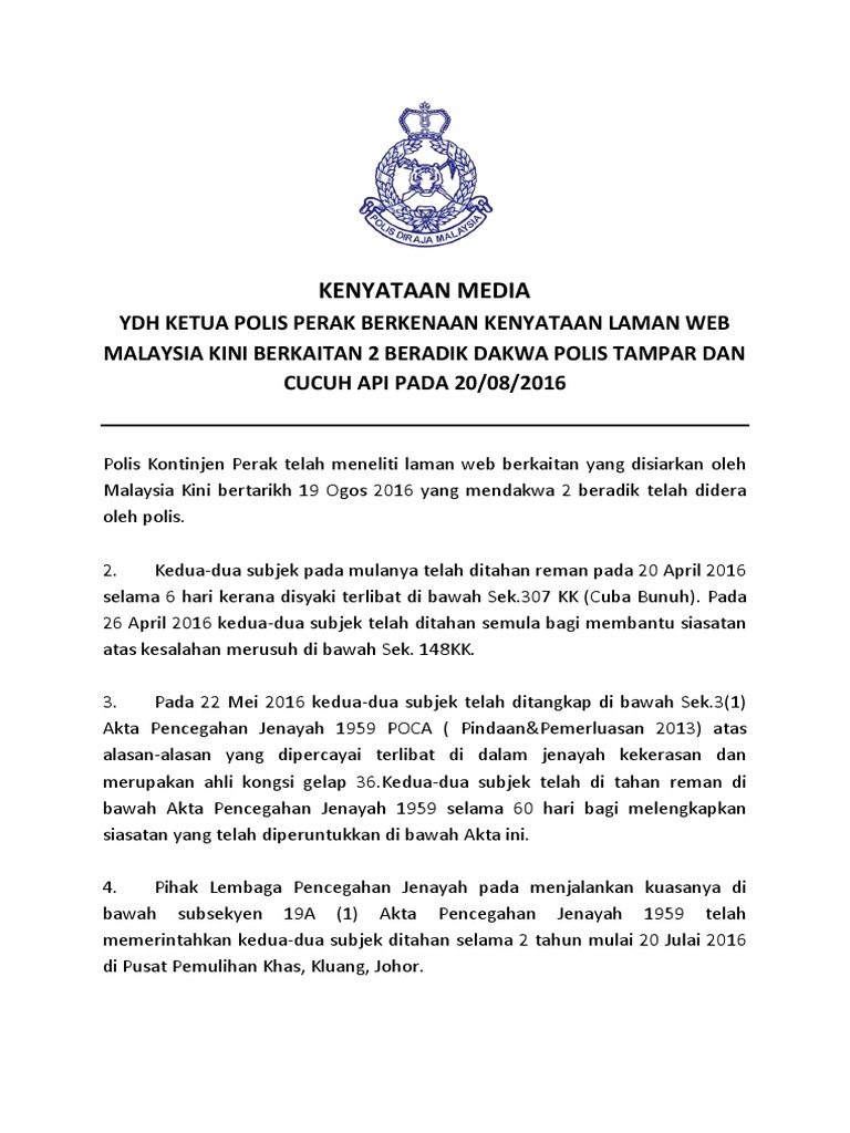 Ketua jabatan siasatan jenayah jsj kuala lumpur senior asisten komisioner nik ros azhan nik ab hamid berkata kesemua individu itu akan ditahan hari ini untuk membantu siasatan terhadap sindiket perjudian di cheras. اکتا ڤنچݢهن جنايه. Suatu akta untuk meminda akta pencegahan jenayah 1959. Pengumuman yang dinanti nanti merdeka56 1malaysia tolakpr zahid hamidi kenyataan menteri dalam negeri datuk seri dr.
