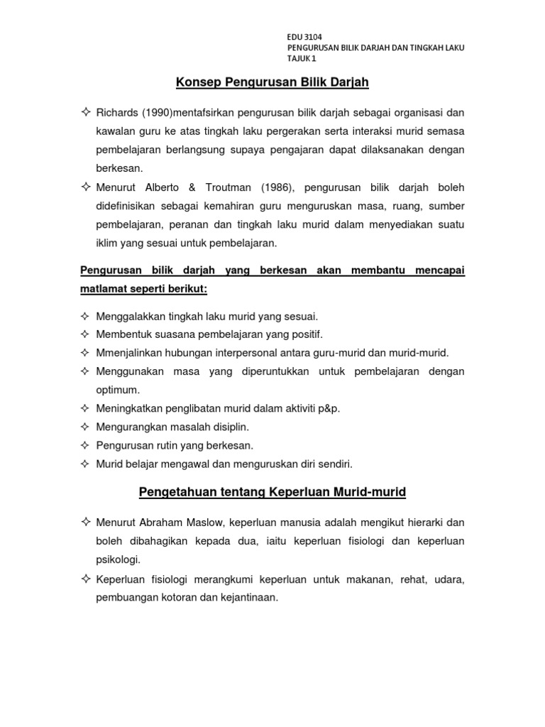 Dalam noraini idis dan shuki osman pengajaran dan pembalajaran. Pengurusan tingkah laku dan bilik darjah. Subjek pengurusan bilik darjah dan tingkah laku edu pensyarah. Abouarab nota ringkas pengurusan bilik darjah dan tingkah laku edu behaviour and classroom management pengurusan bilik darjah dan tingkah laku edu 3 3 0 45 hours bahasa melayu english language nil.
