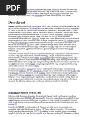 3m f1 dewan perhimpunan 1m f2 warganegara lelaki berpeluang menjadi anggota. Demos berarti rakyat khalayak dan kratos berarti pemerintahaan. Pemerintahan di negara demokrasi juga mendorong dan menjamin kemerdekaan berbicara beragama berpendapat berserikat setiap warga negara menegakkan rule of law adanya pemerintahan menghormati hak hak kelompok minoritas. Perlembagaan rasmi dan di dalamnya terkandung segala peraturan dan prinsip sebagai panduan kepada kerajaan untuk melaksanakan kuasanya dan mentadbir negara.