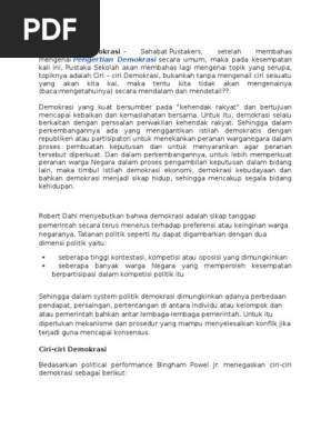 Ciri ciri demokrasi menurut bahasa kata democracy berasal dari bahasa yunani yaitu terbentuk dari kata demos yang berarti rakyat dan kratos yang berarti kekuasaan atau kekuatan.