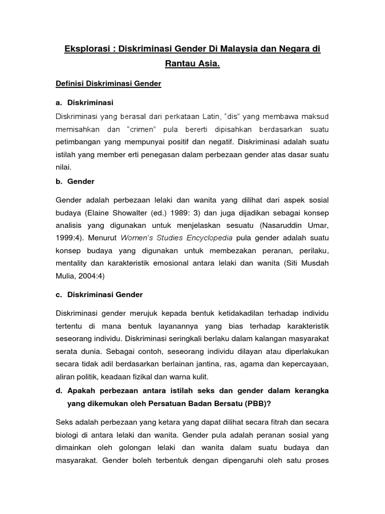 Diskriminasi pengertian jenis macam mengindari mengurangi sikap contoh para ahli. Contoh diskriminasi di masyarakat. 2 https www bambang rustanto diskriminasi htm di akses 5 desember 2014 3 https www diskriminasi terhadap minoritas james danandjaja htm di akses 22 februari 2015. Pengerusi suruhanjaya hak asasi manusia malaysia suhakam tan sri razali ismail berkata berdasarkan sumber jabatan perangkaan hanya 54 7 peratus penyertaan wanita dalam sektor pekerjaan berbanding 80 7 peratus lelaki.