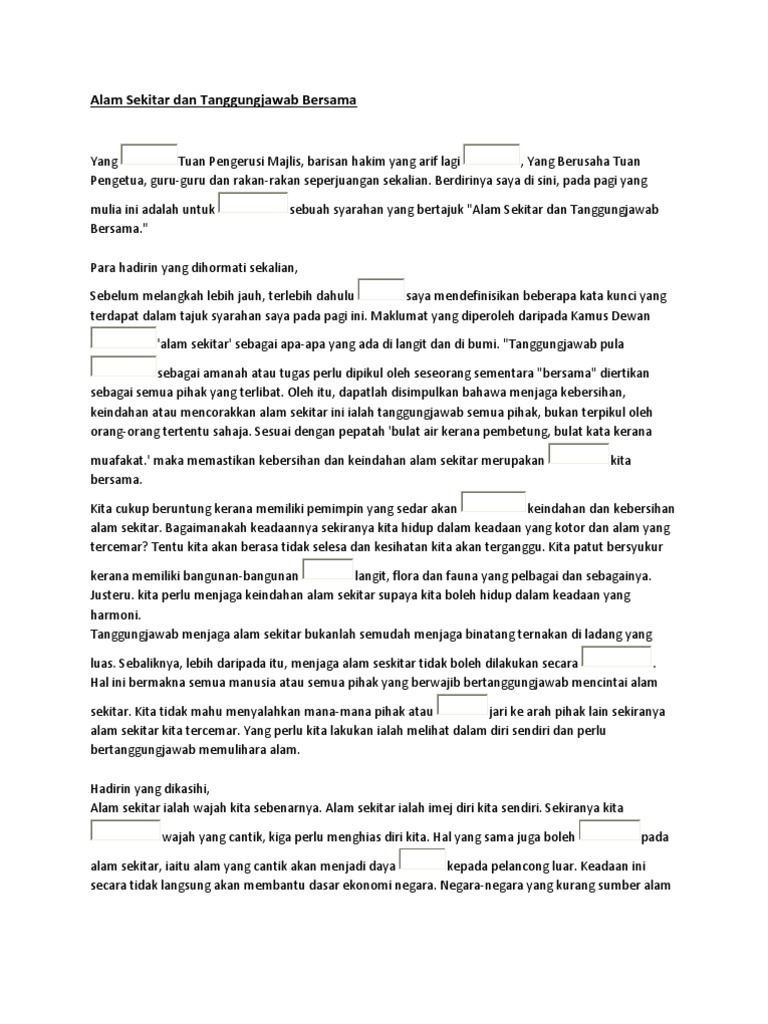 Contoh karangan ucapan tentang alam sekitar. Hal ini terjadi kerana tiada kesedaran sivik dalam diri mereka dan mereka sering memandang enteng tentang isu alam sekitar yang kini menjadi hidangan wajib dalam berita berita yang dipaparkan dalam media massa arus perdana. Related posts to karangan ucapan kepentingan menjaga alam sekitar karangan ucapan kepentingan menjaga alam sekitar 2019 08 10t01 16 00 07 00 rating. Ads contoh karangan ucapan tentang gejala sosial 600 tips. Masalah pencemaran alam sekitar ini dikenal pasti berpunca daripada tangan tangan kotor individu yang tidak bertanggungjawab dalam kalangan masyarakat.