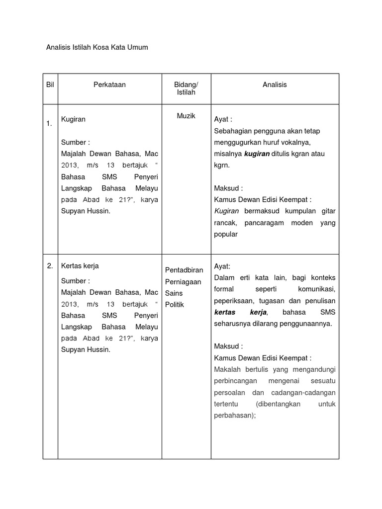 Karena keterbatasan penulis hanya inilah kosa kata yang bisa kami sajikan. Kosa kata di bawah ini tentu hanya sebagian kecil dari kosa kata ilmiah yang ada. Istilah yang terdapat dalam bahasa indonesia berasal dari 3 sumber antara lain. Koleksi kosa kata dan ungkapan menarik kosa kata terdiri daripada kata kata umum dan kata kata khusus atau disebut istilah khusus kata umum ialah kata kata biasa dalam bahasa.