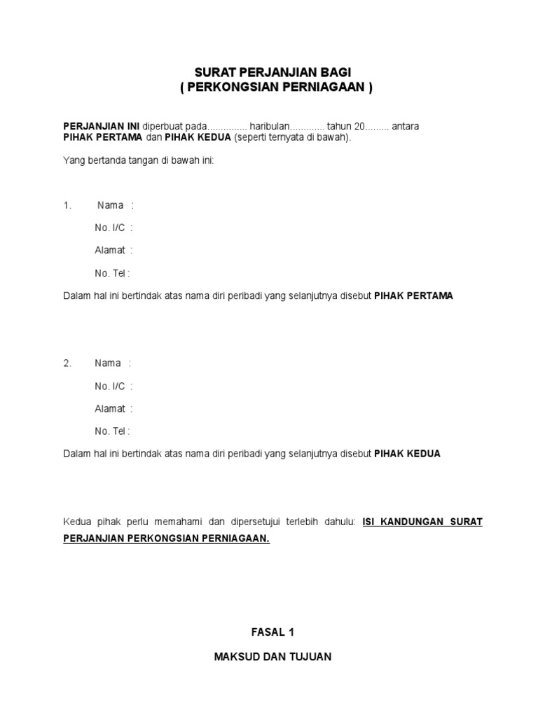 Contoh surat perjanjian rakan kongsi perniagaan pdf to word contoh surat perjanjian rakan kongsi perniagaan pdf to excel contoh surat perj. Fungsi surat perjanjian adalah untuk memeterai perjanjian yang melibatkan urusan kerja untuk menyewa berkerja membeli atau pinjaman wang. Surat perjanjian bagi perkongsian perniagaan perjanjian ini diperbuat pada. Nov 22 2016 contoh surat perjanjian perkongsian perniagaan aku dan dunia kita.