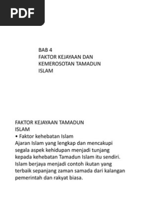 Faktor kejayaan tamadun islam ialah. Faktor utama kecemerlangan tamadun islam ialah keyakinan umat islam terhadap ajaran islam. Islam menekankan akidah dibina atas keyakinan berasaskan ilmu. Islam mementingkan ilmu pengetahuan dan penggunaan akal dalam mencari kebenaran. 7 perspektif barat perspektif islam j k.