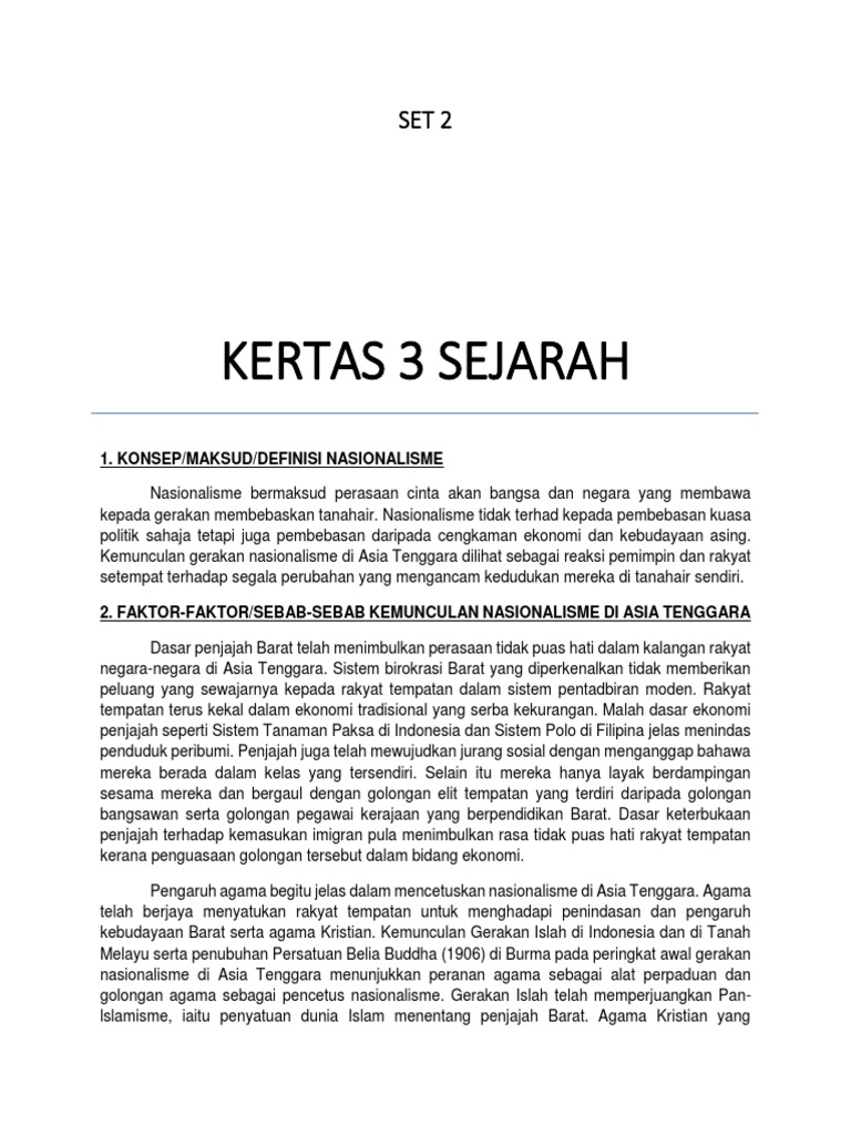 Faktor kemunculan nasionalisme di asia tenggara esei. Esei soalan 1 perincian butiran markah a terangkan faktor faktor kemunculan nasionalisme di asia tenggara. Faktor pertama ialah pengaruh agama pa agama menyatukan rakyat menentang penjajahan dan penindasan contoh gerakan islah di tanah melayu faktor kedua ialah penjajahan barat pb. Kemunculan dan perkembangan nasionalisme di asia tenggara. Ciri ciri umum sistem birokrasi barat yang diperkenalkan di negara negara asia tenggara kuasa barat menubuhkan kerajaan pusat barat melantik gabenor jeneral.
