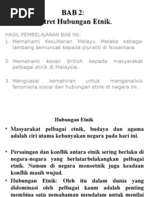 Hubungan etnik bab 2 pdf. Book 10 bab 1 indd 1 3 10 09 4 50 43 pm. Hubungan etnik bab 2 1. Bab 3 limpahan kemakmuran merentasi etnik. Menjelaskan kesultanan melaka sbg lambang kemuncak pluraliti 2.