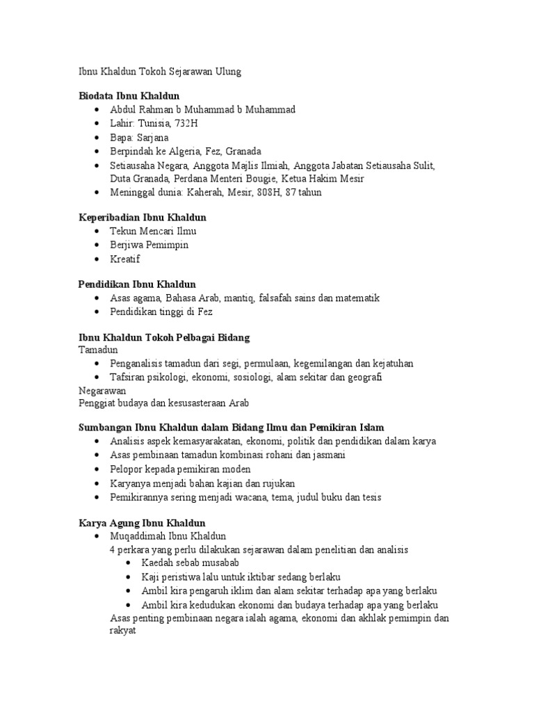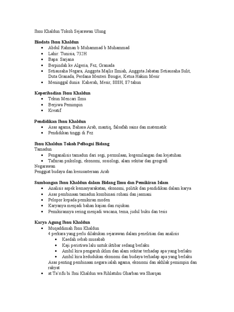 Husain bin abdullah. 1 riwayat hidup ibnu khaldun. Perwatakan beliau alhamdulillah tokoh sarjana dan sejarawan menganalisis tamadun beri tafsiran dalam psikologi ekonomi sosiologi alam sekitar dan geografi al muqaddimah negarawan banyak jasa untuk negara menyandang jawatan penting penggiat budaya dan. C dikenali sebagai ibnu khaldun sempena nama tempat kelahirannya di kawasan khalduniyah di tunisia.