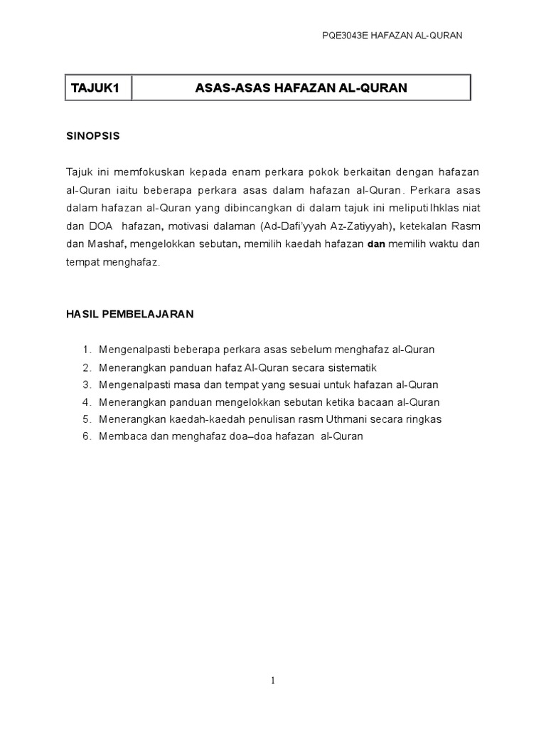 Ini boleh menjimatkan masa dan dapat meningkatkan peluang setiapmurid mendapat bimbingan kaedah pengajaran hafazan al quranbidang hafazan al quran bermula semenjak penurunan ayat al quran yang pertama ketika rasullulah s a w. Menteri besar dr ahmad samsuri mokhtar berkata kaedah asuhan al quran itu sesuai dipraktikkan kepada pelajar pada usia awal remaja kerana ketika itu pemikiran. Dengan lahirnya modul superb huffaz kaedah hafazah menjadi lebih sistematik melalui modul yang dihasilkan di dalam sebuah buku hafalan utama dan buku latihan mewarna untuk anak anak. 19 2 2 3 sejarah hafazan al quran di zaman tabi in dan atba al tabi in 21 2 3 kepentingan memahami ayat al quran 23.