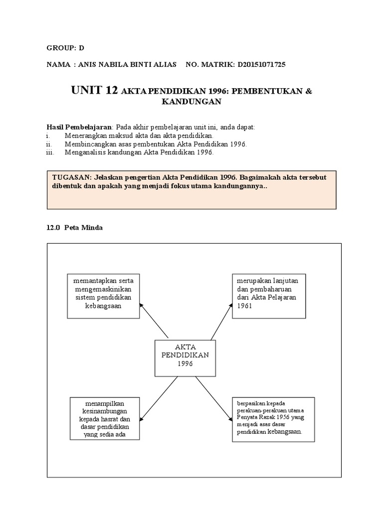 Share to twitter share to facebook share to pinterest. Akta pendidikan 1996 merupakan lanjutan dan pembaharuan dari akta pelajaran 1961 bertujuan memantapkan sistem pendidikan kebangsaan sejajar dengan kehendak dan cita cita malaysia untuk menjadi pusat kecemerlangan pendidikan yang bermutu tinggi dan bertaraf dunia. Tujuan akta pendidikan 1996 ini ialah ke arah memantapkan sistem pendidikan kebangasaan untuk generasi akan datang sejajar dengan kehendak dan cita cita negara untuk menjadikan malaysia sebagai pusat kecemerlangan pendidikan yang bermutu tinggi dan bertaraf dunia. Kandungan akta pendidikan 1996 pengenalan akta pendidikan 1996 telah menggariskan perkara perkara berikut.