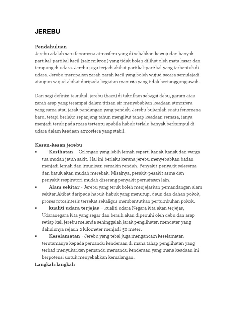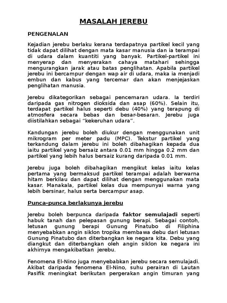Antara punca yang menyebabkan kemerosotan kualiti udara adalah. Faktor faktor yang menyebabkan kesan rumah hijau ialah. Jerebu jĕ rĕ bu juga dalam baku indonesia. Jerebu merupakan zarah zarah kecil yang boleh wujud secara semulajadi ataupun wujud akibat daripada kegiatan manusia yang tidak bertanggungjawab.