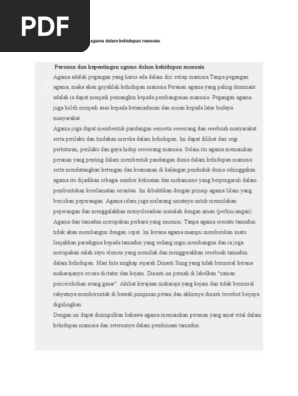 Kepentingan beragama kepada setiap manusia ialah dapat menjadikan manusia berakhlak mulia. Peranan dan kepentingan agama dalam kehidupan manusia. Secara lebih terperinci pentingnya peran agama dalam kehidupan manusia dapat dipahami dalam poin poin berikut. Bahkan seluruh bumi allah swt ini merupakan tempat menunaikan ibadah dalam realiti kehidupan.