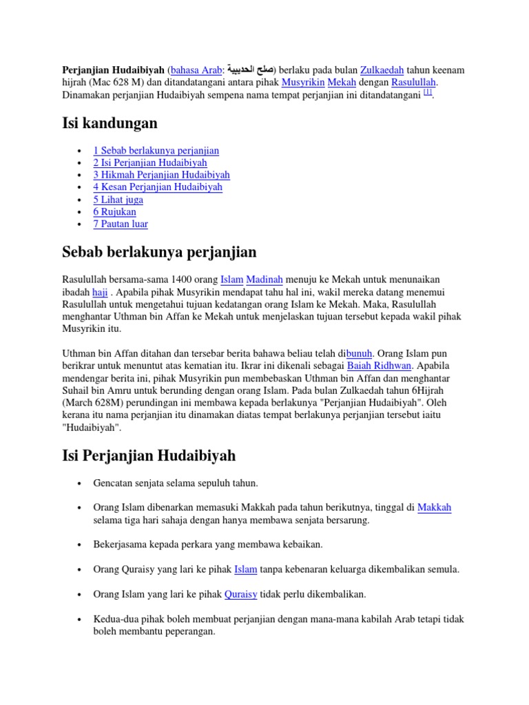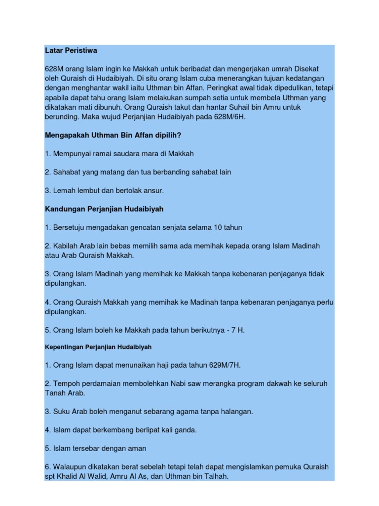 Persetujuan orang arab quraisy menandatangani perjanjian ini menunjukkan pengiktirafan kerajaan islam di madinah. Beliau adalah tokoh dengan karakter yang paling hebat. Melambangkan ketokohan nabi muhammad s a w. Menjadi perintis ke arah pembukaan semula kota makkah maks 4m 1 1 1 1 1 1 1 1 1 1 maks 8m 1 1 1 1 1 1 1 1 1.