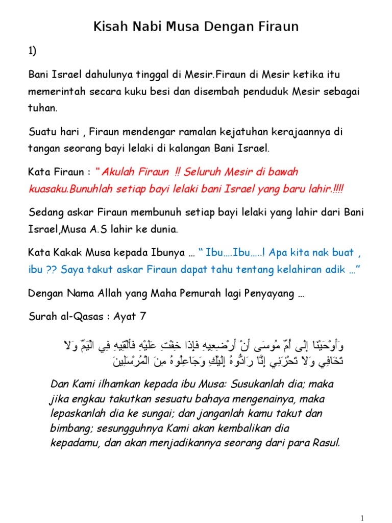 Kisah nabi musa dan fir aun dalam al quran cara allah bercerita dalam quran cukup membuat kita takjub. Allah kisahkan mereka berdua secara bersama sama dalam beberapa tempat dalam al qur an diantaranya qs. Ia kisah adab seorang anak terhadap seorang bapa. Ada beberapa surat yang lengkap menerangkan kisah sosok sentral dalam agama yahudi ini.
