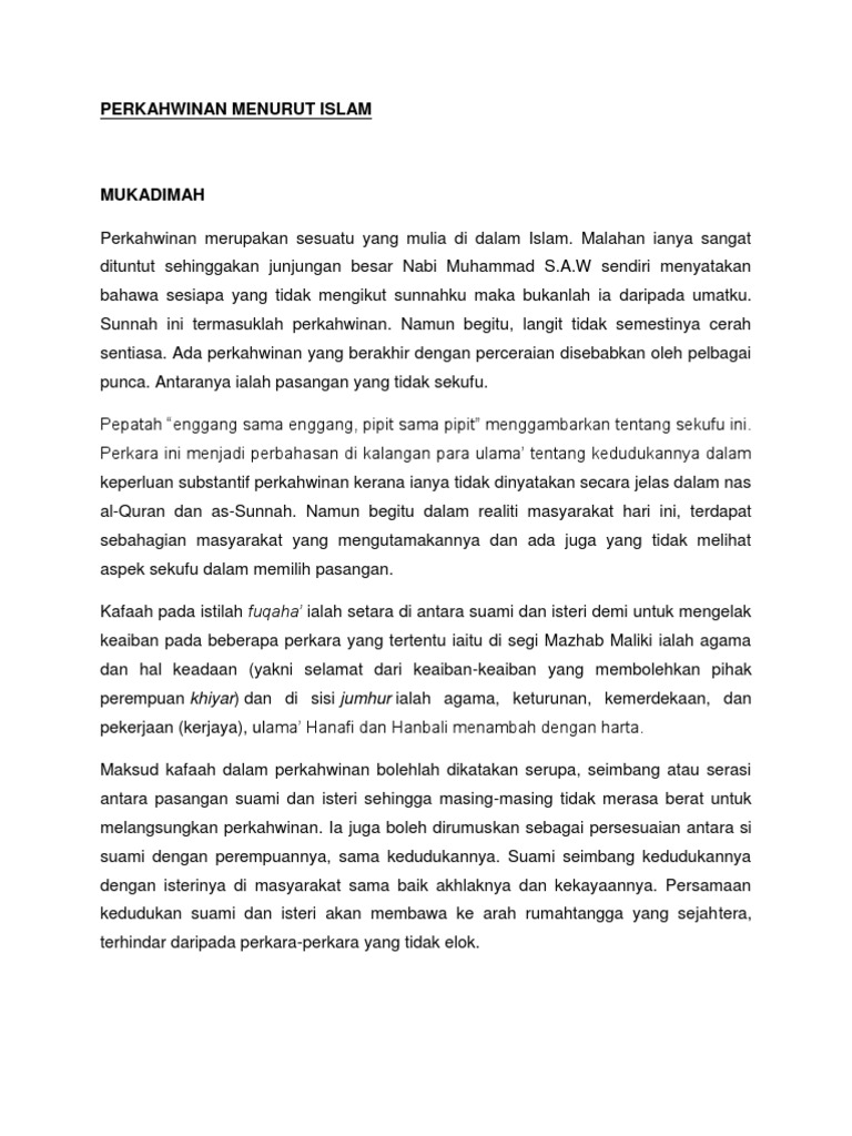 Konsep pernikahan dalam islam dan tanggungjawab suami isteri dalam sesebuah rumahtangga. Konsep perkahwinan dalam agama islam 2 1 pengenalan perkahwinan merupakan instrumen prelimenari primer kepada pembinaan keluarga sebagai unit asas dan tunjang sesebuah masyarakat. Pembagian tugas dimana yang satu mengurusi dan mengatur rumah tangga sedang yang lain bekerja diluar sesuai dengan batas batas tanggung jawab antara suami istri dalam menangani tugas tugasnya. Selamat beramal dan ceriakan hati si tercinta. Persamaan kedudukan suami dan isteri akan membawa ke arah rumahtangga yang sejahtera terhindar daripada perkara perkara yang tidak elok.