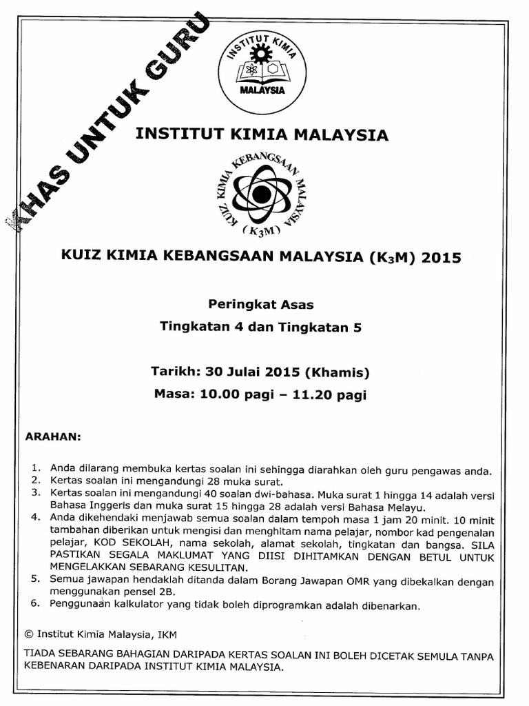 Kuiz kimia kebangsaan 2017. Contoh soalan kuiz kimia kebangsaan. Kuiz kimia kebangsaan malaysia k3m malaysian national chemistry quiz or kuiz kimia kebangsaan malaysia k3m is an annual event commencing from 2002. Contoh soalan persamaan linear tingkatan 5. Postponement of kuiz kimia kebangsaan malaysia k3m 2020 young chemists evening 2020 inspire and innovate chemistry of the future 4 december 2020 3 00 pm manhattan v berjaya times square.