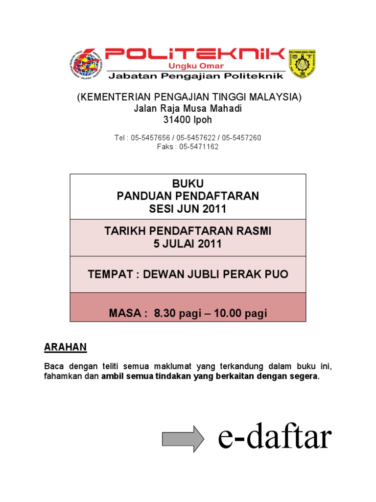 Program pengajian yang ditawarkan di politeknik ungku omar adalah di peringkat sijil diploma dan juga ijazah sarjana muda. 605 547 1162 webmasterpuo 1govuc gov my maklumbalas puo. Politeknik ungku omar puo jalan raja musa mahadi 31400 ipoh perak malaysia tel. Dibawah ini disenaraikan semua politeknik yang terdapat di malaysia beserta alamat no telefon dan laman webnya.