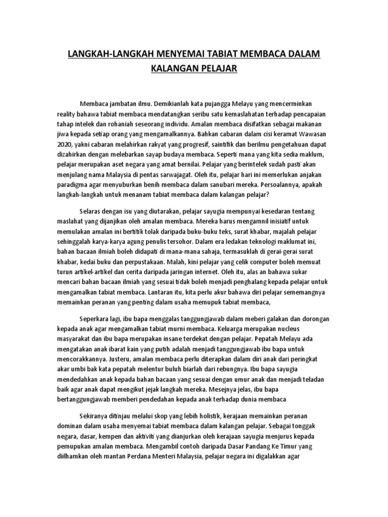 Langkah memupuk amalan membaca dalam kalangan remaja. Dalam meneroka zaman teknologi maklumat ini kemajuan dan kepesatan pembangunan telah menjadikan manusia cenderung kepada materialistik. Contoh karangan langkah langkah mencegah wabak covid 19. Selain itu guru di sekolah juga memainkan peranan penting dalam memupuk minat membaca dalam kalangan remaja hal in kerana remaja menghabiskan masa enam jam di sekolah masa inilah tanggungjawab berkenaan terletak di bahu guru dan bukannya ibu bapa guru guru dapat menarik minat mereka terhadap buku tersebut dan secara tidak langsung menimbulkan keinginan membaca buku tersebut di s amp ing itu. Oleh itu sejajar dengan sesuatu amalan itu bermula dari rumah nescaya keluarga haruslah memainkan peranan aktif untuk memupuk semula amalan membaca.