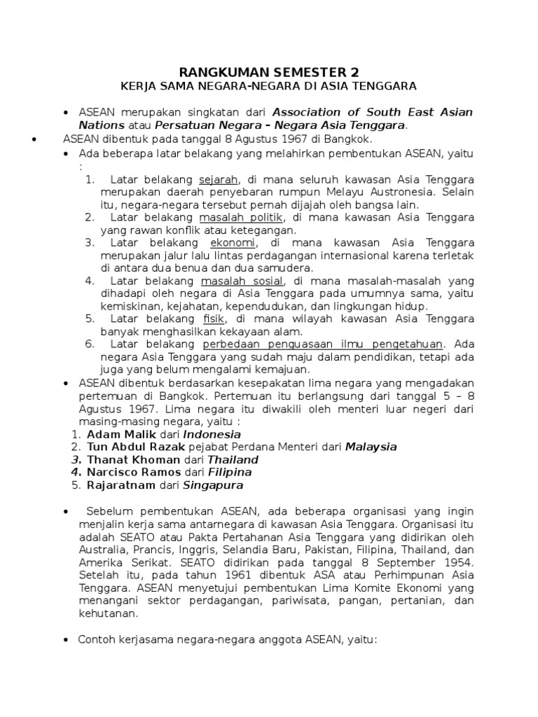 Alasan utamanya adalah persamaan letak geografis. Sejarah penubuhan asean asean ialah association of south east asia nation. Hal tersebut tercermin dari adanya berbagai konflik di kawasan yang melibatkan kepentingan negara negara besar pasca perang dunia ii. Persamaan kepentingan di berbagai bidang.
