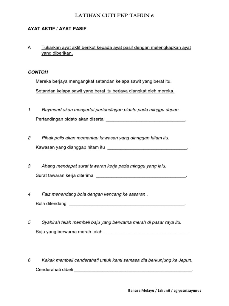 Latihan Ayat Aktif Dan Ayat Pasif Tahun 6