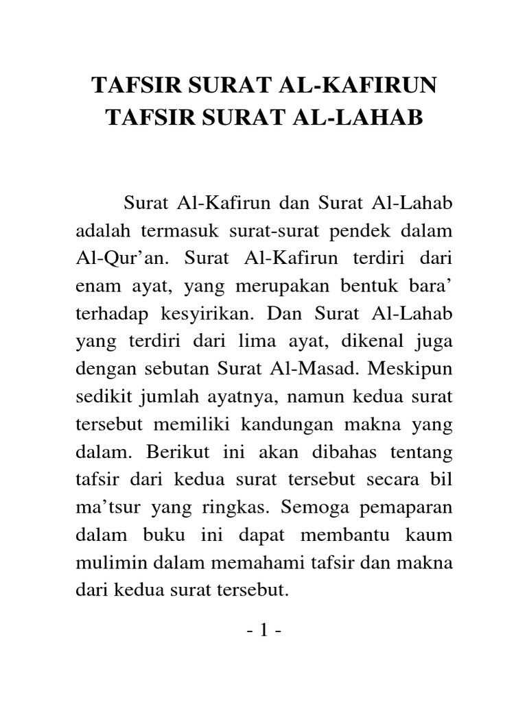 Terjemahan al quran bahasa melayu. Diturunkannya surat al kafirun karena orang orang kafir mengajak rasulullah saw untuk menyembah berhala. Berikut ini terjemahan asbabun nuzul dan tafsir surat al kafirun. Dan pendapat yang ketiga mengatakan bahwa hal tersebut merupakan taukid pengukuhan kata semata.