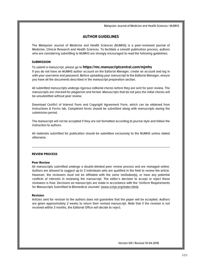 To facilitate a smooth publication process authors who are considering submitting to mjmhs are strongly encouraged to read the following guidelines. Matlamat utama mjmhs adalah menjadi jurnal utama mengenai semua aspek perubatan dan sains kesihatan di malaysia dan di peringkat antarabangsa. Download formatted paper in docx and latex formats.