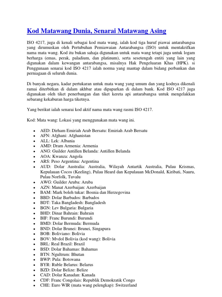 Nama nama mata uang masing masing negara tersebut mempunyai nilai yang berbeda beda. Mata wang negara yang kaya dengan minyak ini begitu kuat dan kukuh adalah disebabkan ekonominya yang sangat stabil. Singkatan mata wang kod tiga huruf mata wang. Pengenalan topik wang chongsyin.