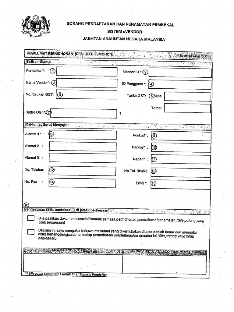 The journey of a thousand miles begins with one step. In order to register as an eligible vendor you need to follow the established steps and application procedures. Permohonan pendaftaran pembekal sistem e vendor merujuk kepada tajuk diatas sila rujuk surat anm sel kp 400 13 2 10 bertarikh 15 oktober disini portal negeri cawangan. Log masuk pendaftaran baru.