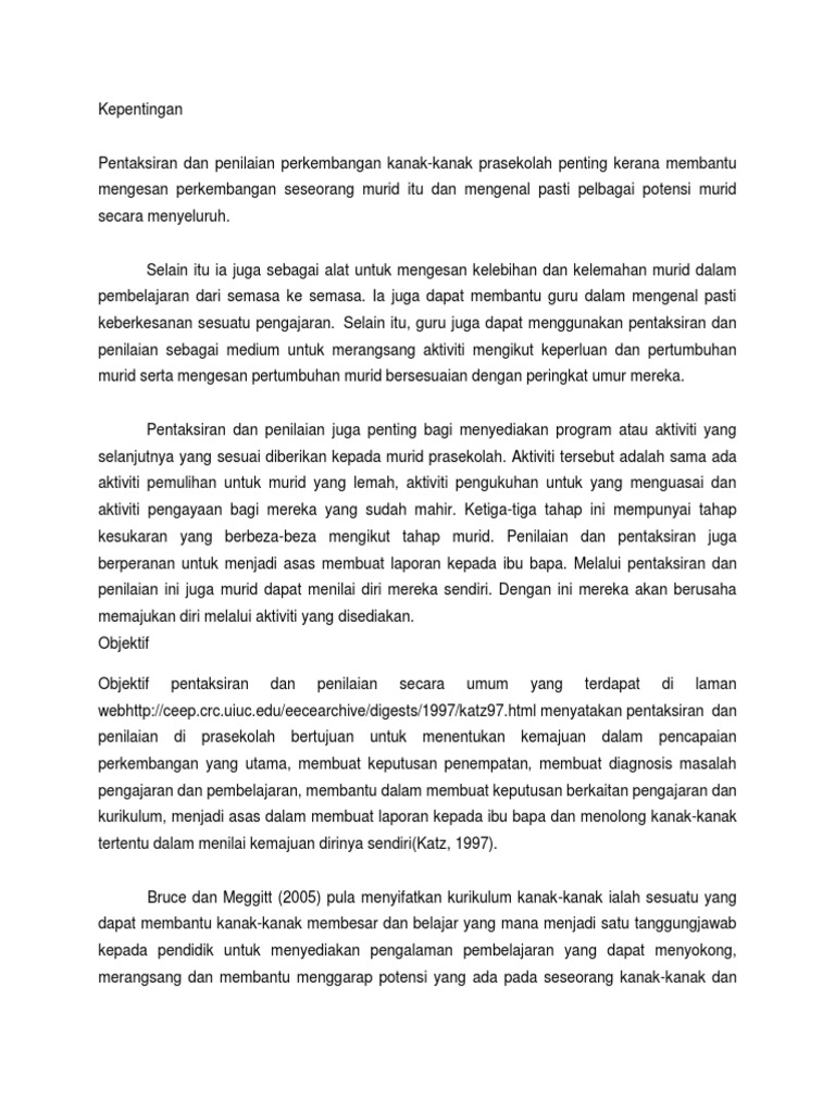 Pentaksiran Dan Penilaian Kanak Kanak Prasekolah Pdf