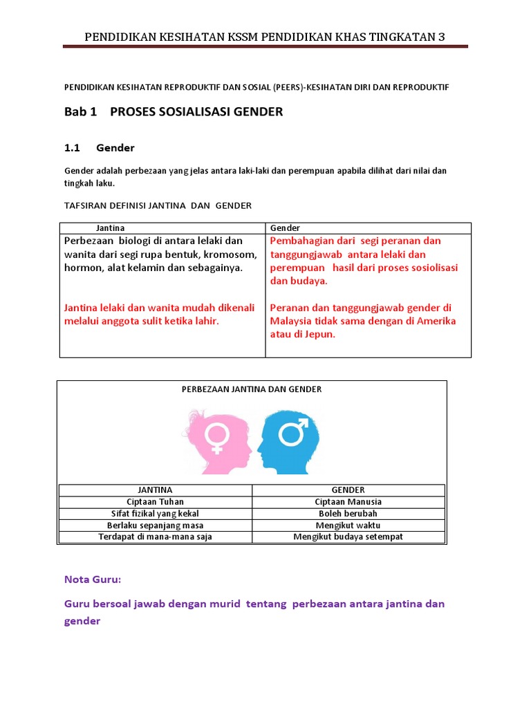 Amatlah penting untuk lelaki dan perempuan ini memahami perbezaan dan persamaan antara satu sama lain untuk mewujudkan persefahaman dalam kehidupan. Aktiviti pengajaran harus disesuaikan dgn perkembangan jantina. Murid lelaki biasanya lebih lasak dan gemar terlibat dalam aktiviti luar seperti mendaki gunung berkayak bermain papan luncur dan lain lain aktiviti yang mencabar. Untuk mata pelajaran ini pengkaji melihat terdapat keseimbangan antara pelajar lelaki dan perempuan yang mana jumlah mereka hampir sama yang mendapat gred a.