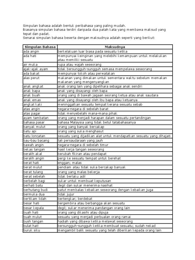 Peribahasa dan simpulan bahasa. Koleksi peribahasa melayu simpulan bahasa dan maksud. Lelaki yang telah diakui sebagai abang tetapi tidak mempunyai pertalian darah dengan orang yang mengakuinya. Contoh ayat simpulan bahasa dan maksud simpulan bahasa merupakan peribahasa melayu yang biasanya terdiri daripada dua patah kata. Kamus peribahasa dan simpulan bahasa melayu.