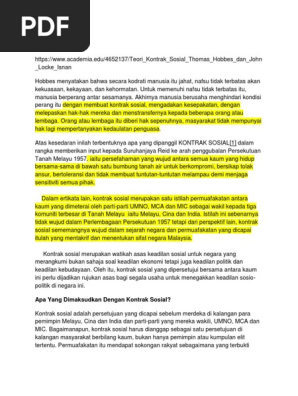 Rujukan kepada kontrak sosial. Terdapat penghujahan bahawa individu dalam sesebuah kontrak sosial itu telah menyerahkan sebahagian kebebasan mereka secara sembunyi mahupun terbuka. 5 hak kerakyatan dalam perlembagaan kerakyatan diberi kepada penduduk yang lahir dan bermastautindalam suatu tempoh tertentu hak kerakyatan perlembagaan persekutuan tanah melayu 1948. Mereka berbeda soal bagaimana siapa mengambil kewenangan dan. Kontrak sosial merupakan suatu teori atau model dalam falsafah politik yang menekan mengenai hubungan antara asal usul sesebuah masyarakat itu dengan tampuk kekuasaan mereka yang memerintah dalam sesebuah negara terhadap individu dalam masyarakat.