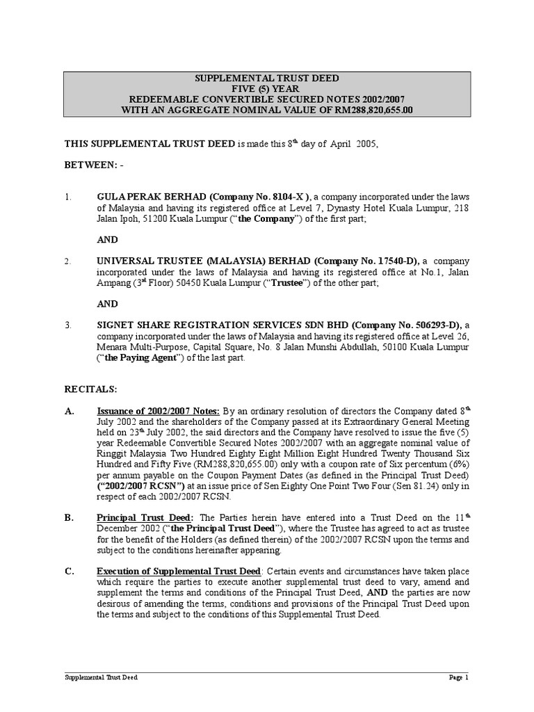 B the following schedules are part of this deed and contain the followi ng i schedule 1. Thetrustee holds the trust fund on the trusts and on the terms of and subject to this deed including its schedules. This deed was signed by my brother but i guess he totally forget about it. Other types of taxes that can apply to trusts in malaysia include the stamp duty and the real property gains tax.