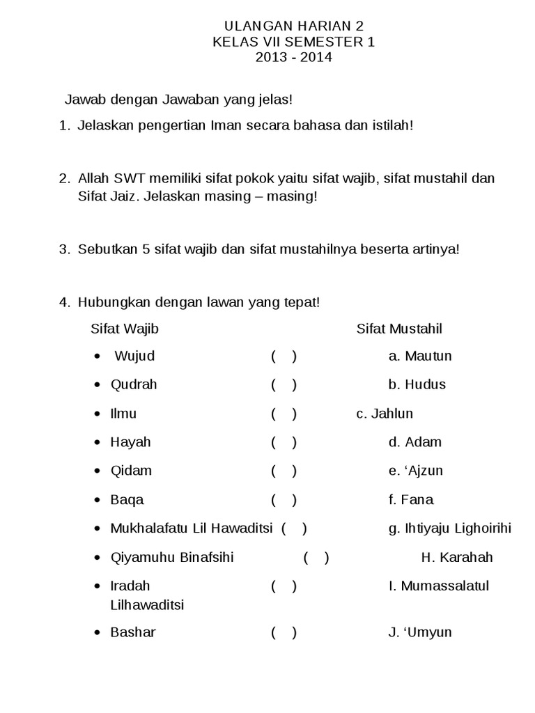 Allah lah yang menciptakan langit dan bumi dan apa yang ada di antara keduanya dalam enam masa kemudia ia bersemayam di atas arsy. Sebagai seorang muslim yang baik sebaiknya kita mengetahui sifat wajib maupun sifat mustahil yang dimiliki allah swt agar ke iman nan kita kepada allah semakin kuwat berikut sifat wajib dan mustahil bagi allah swt yang perlu kita ketahui. 20 sifat wajib dan mustahil bagi allah beserta dalilnya. Berbeda dengan sifat wajib sifat mustahil rasul merupakan sifat.