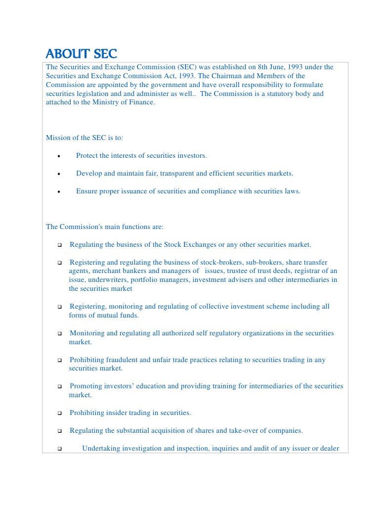 1 this act may be called the securities and exchange commission act 1993. 2 it shall be deemed to have come into force on 20th vaishakh 1400 3th may 1993 respectively 2. It has the power to investigate and enforce the areas within its jurisdiction. Act 498 securities commission act 1993.