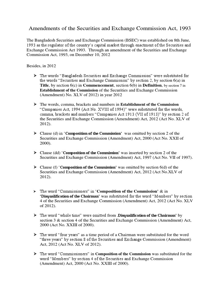 Securities commission act 1993. Securities laws means the securities industry act 1983 the securities industry central depositories act 1991 the securities commission act 1993 act 498 and the futures industry act 1993. Definition 1 in this act unless there is anything repugnant in subject or context a commission means bangladesh securities and exchange commission. And a power to specify includes the power to specify differently for different persons or different. This act may be cited as the securities act 1 date of commencement 17th december 1993.