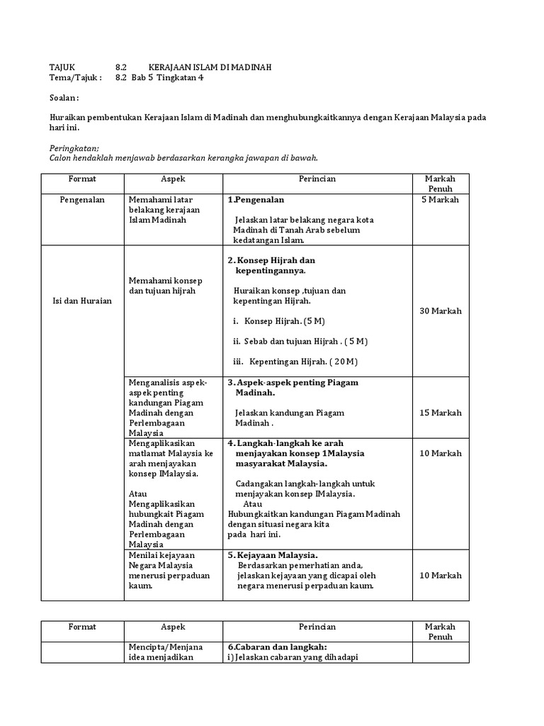 Sejarah tingkatan 4 piagam madinah kertas 2. 2 piagam madinah sahifah madinah. Berita terkini dan terpercaya berkata. Bab 1 kemunculan tamadun awal manusia. Skema jawapan kerajaan islam di madinah cadangan jawapan sejarah kertas 3 tingkatan 4 bab 5 soalan.