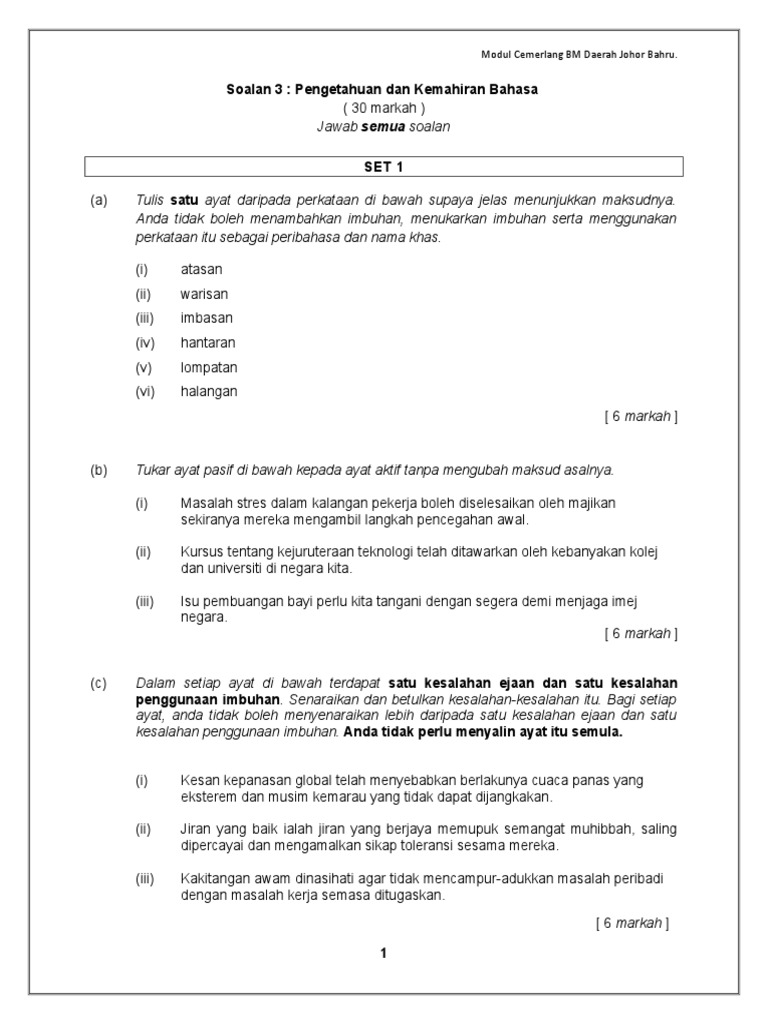 Mengamalkan pengetahuan kemahiran dan nilai yang dipelajari di bilik darjah. Peperiksaan sijil pelajaran malaysia spm adalah sangat penting buat para pelajar kerana ianya menentukan halatuju pendidikan tinggi dan seterusnya untuk mereka. Anda tidak boleh menambahkan imbuhan menukarkan imbuhan serta menggunakan perkataan itu sebagai peribahasa dan nama khas. Pengetahuan dan kemahiran bahasa 30 markah jawab semua soalan.