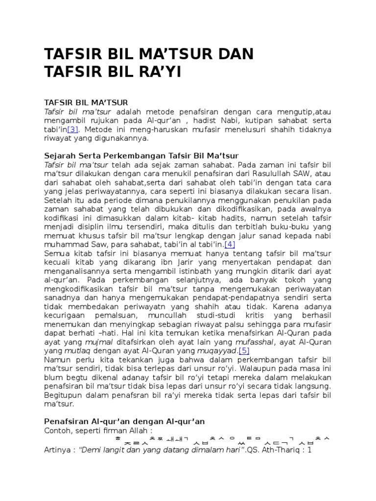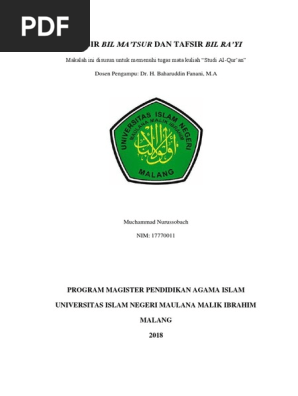 Tafsir bil ma tsur pdf. Tafsir bil ma tsur dan tafsir bir ra yi merupakan metode tafsir yang bertolak belakang karena tafsir bil ma tsur disandarkan atau di rujuk pada al qur an serta hadits nabi yang sahih dan jelas sanadnya sedangkan tafsir bir ra yi metode tafsir yang hasil tafsirannya agak diragukan karena banyak yang termasuki oleh kepentongan madzhab dan golongan namun masih ada yang. وأنزلنا إليك الذكرى لتبين للناس ما نزل إليهم dan kami telah menurunkan al qur. Pdf there are three. Sejarah serta perkembangan tafsir bil ma tsur tafsir bil ma tsur telah.