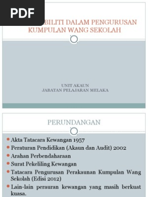 0bjektif kursus menerapkan kefahaman yang mendalam terhadap konsep sistem dan perancangan yang terlibat didalam sistem kutipan terimaan kumpulan wang sekolah. Pengetua guru besar selaku pentadbir di peringkat sekolah perlu memainkan peranan utama dalam mempastikan setiap sumber yang disediakan oleh. Anda juga boleh memuat turun dokumen ini dari folder umum dropbox wahanakom ppd belaga. Sila muat turun dokumen tatacara pengurusan dan perakaunan kumpulan wang sekolah di sini.