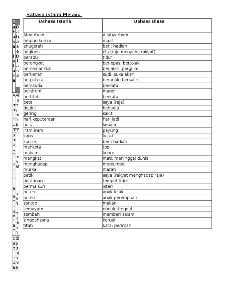 Syarikat syarikat yang dirujuk di dalam laman web ini tidak boleh ditafsirkan sebagai agen atau syarikat yang disyorkan oleh istana. Tidur terima kasih tidak tahu suami. Merafak mengangkat 10. Bahasa istana ialah bentuk bahasa yang digunakan dalam kalangan kerabat diraja apabila berhubung atau berkomunikasi dengan kerabat diraja serta apabila menyebut hal ehwal berkenaan raja.